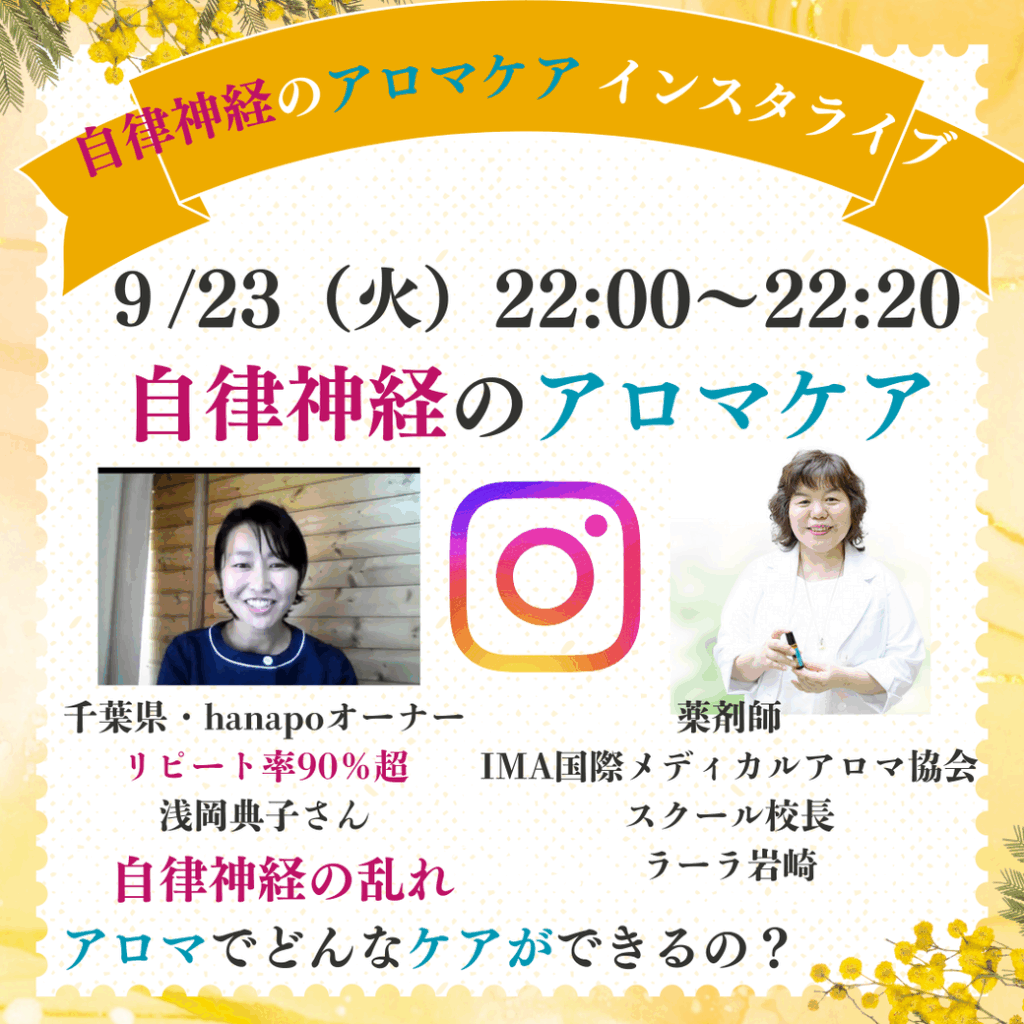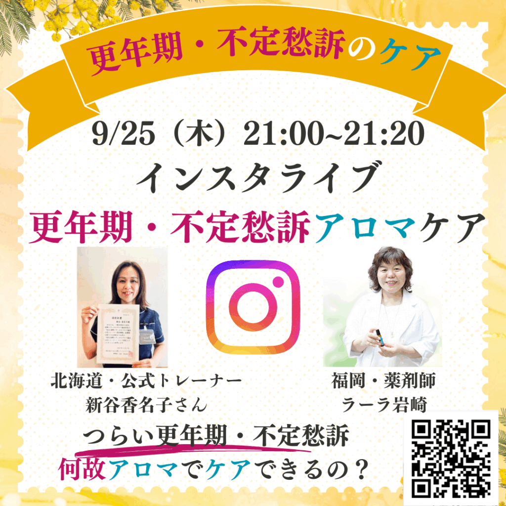 秋🍀自律神経のケア🌺更年期・不定愁訴のケア🍀全部アロマでできますよ~♪&本日22:00、25日21:00インスタライブでお話しします