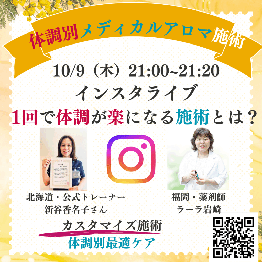 1回で!🍀体調が楽になる施術とは?明日インスタライブでもお話しします メディカルアロマ資格取得スクール IMA国際メディカルアロマ協会