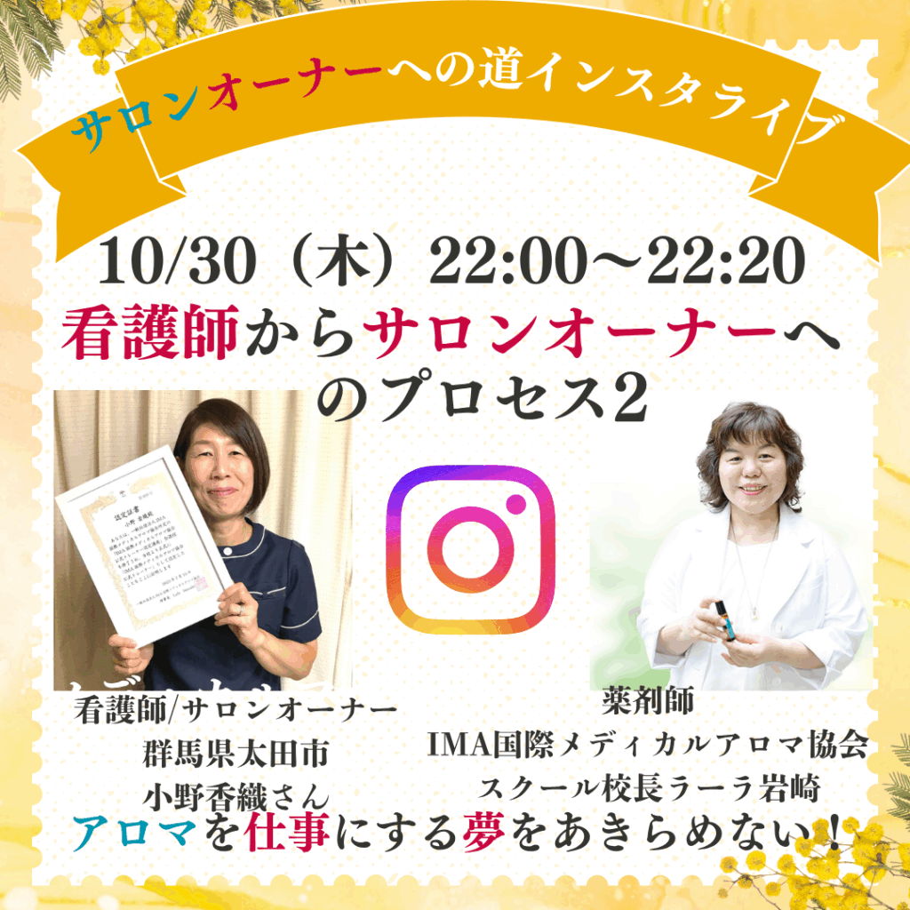 🍀アロマ(を仕事にする)の夢をあきらめたくない!明後日🌺看護師の小野香織さんとインスタライブでお話しします♪
